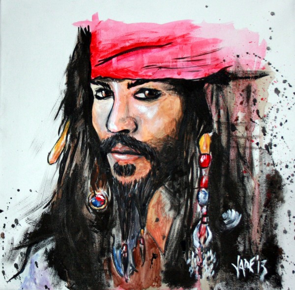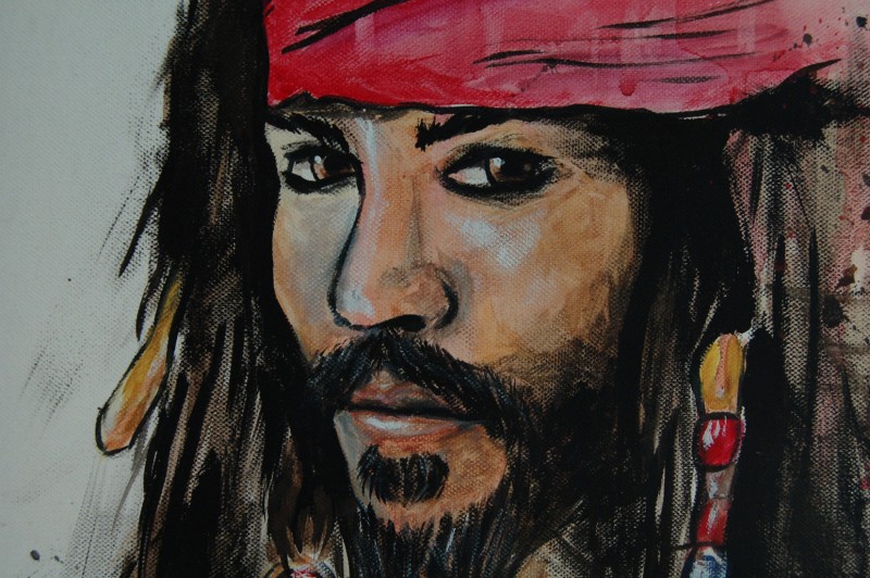 Jack Sparrow (Piratas del Caribe). Acuarela y acrílico sobre lienzo