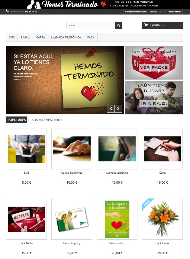 Además, en las primeras promos, he tenido libertad casi absoluta para amoldarlas a mi gusto, dándole un toque de humor… Ya sabéis, si queréis sacar a alguien de vuestra vida y no sabéis como hacerlo, ahora podéis contar con el primer servicio de rutpuras en España. Y si lo que queréis es una bonita tienda online autogestionable con Prestashop… ¡Contad con mi ratón! 😉