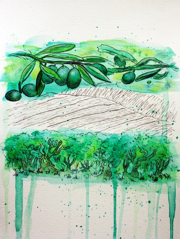 Portada realizada en exclusiva para la publicación poética de Noches del Baratillo, Andalucía en Verde Oliva, con motivo del día de Andalucía 2014.